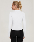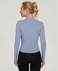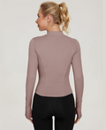 This versatile long-sleeve top pairs beautifully with leggings, joggers, yoga pants, sports bras, or even layered under a jacket. Ideal for year-round wear. -
